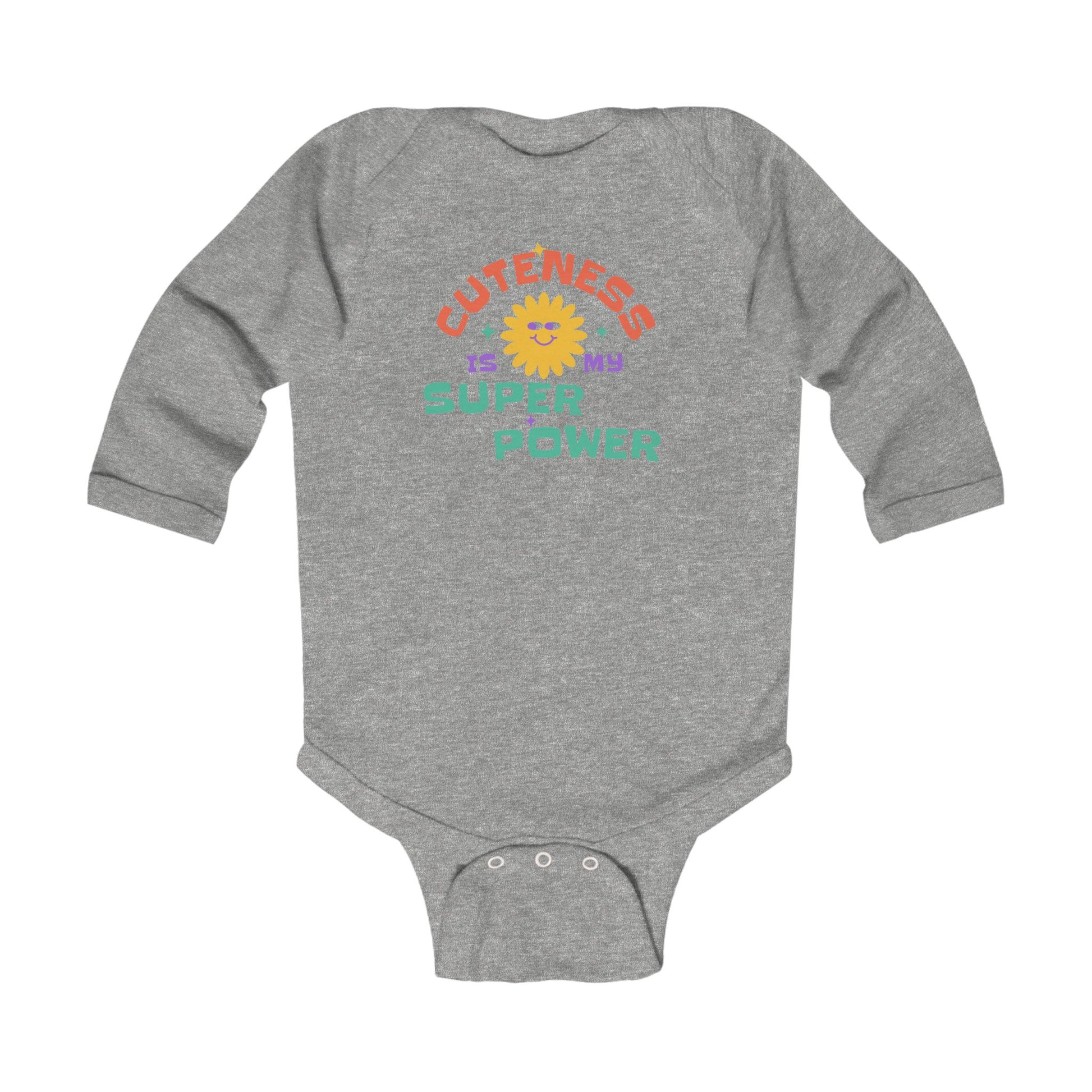 This infant long sleeve bodysuit is100% cotton to ensure the fabric will be smooth and soft against the young one's skin. There are plastic snaps at the cross closure for easy changing. All bindings have ribbed knitting for durability and improved range of motion.